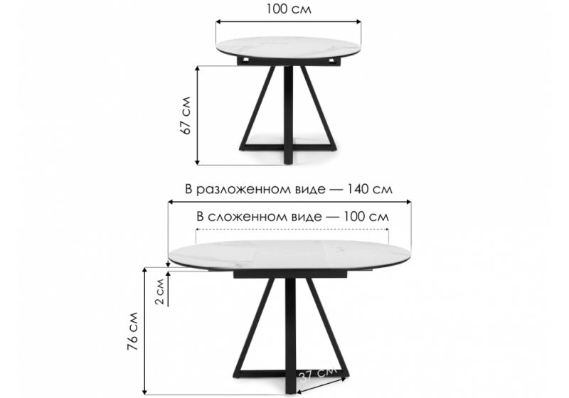 Керамический стол Нельсон 100(140)х100х76 alpine white / черный (100x76)