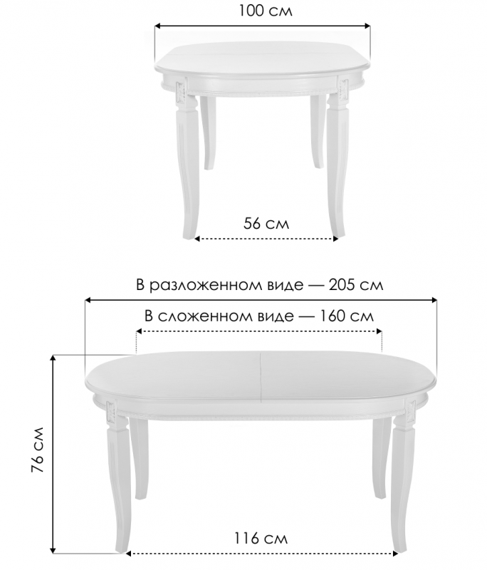 Стол деревянный Aviano 160(205)х100х76 молочный с патиной (100x76)