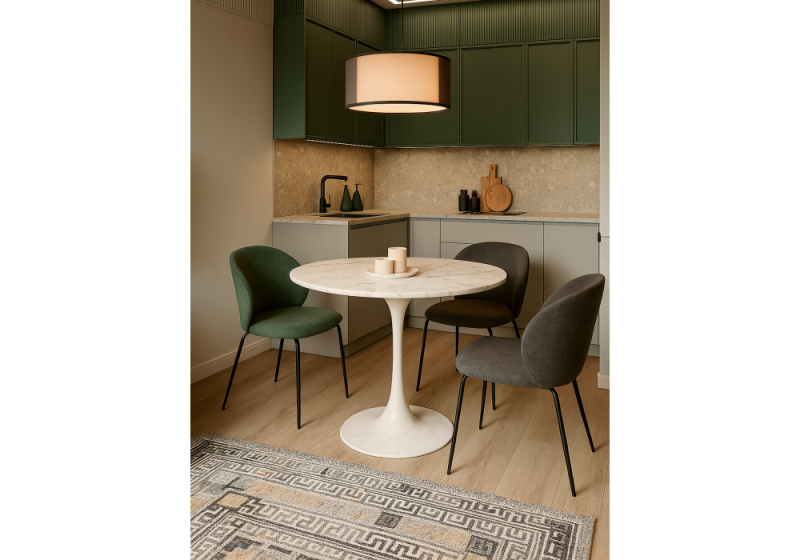Стол деревянный Тулип 90х73 мрамор белый / белый (90x73)