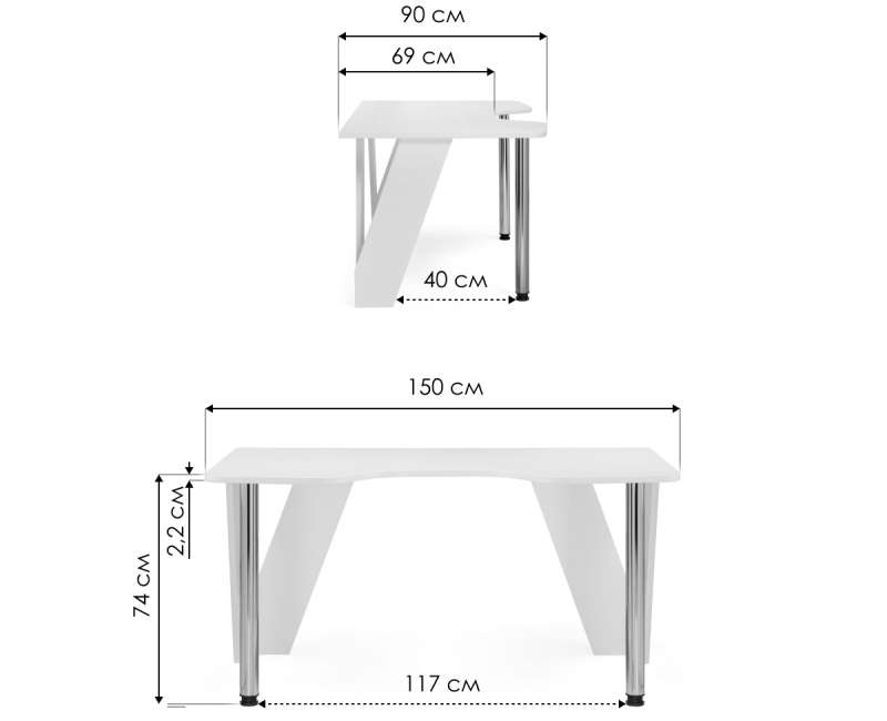 Компьютерный стол КСТ-116 150х90х75 белый (90x75).