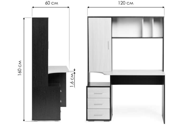 Компьютерный стол КСТ-16 120х60х160 левый дуб сонома / белый (60x160).